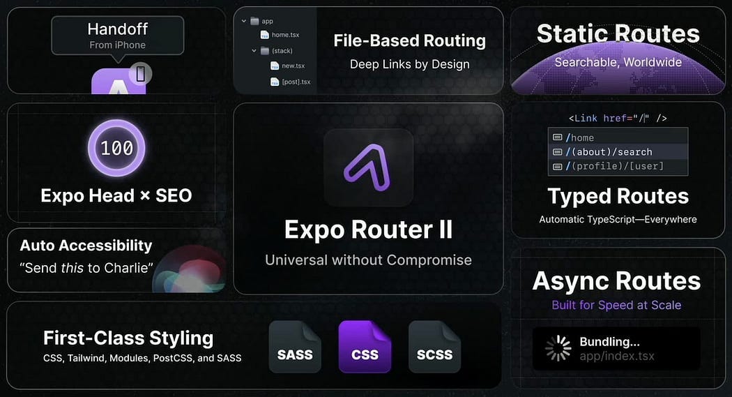 Evan Bacon presents at App.js the features planned for Expo Router v2. See also this thread. The use of universal links has many UX benefits. Expo continues to invest in web support, which is progressing well with the latest advances in the Metro bundler. There is even CSS support planned. Expo could well start to compete with Next.js on the web?