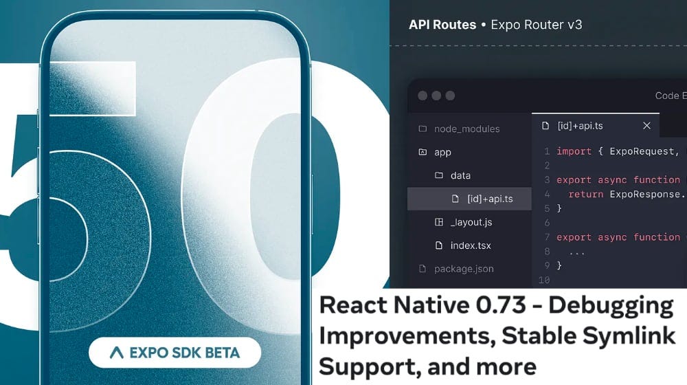 📦 Expo SDK 50 beta: upgrades to React-Native 0.73, with a new Expo Dev Tools Plugin API, a complete rewrite of