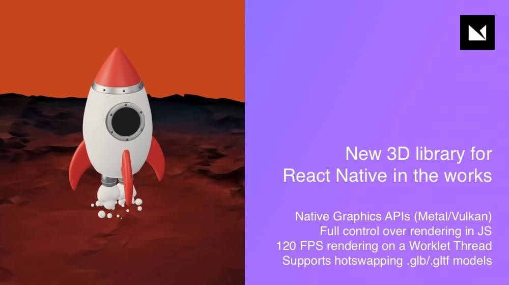 One of the most inspiring things in the RN community is observing folks like Marc Rousavy, William Candillon and Christian Falch pushing the boundaries of what’s possible with this technology and going far beyond rendering text and buttons on a screen. With the recent Skia announcements, we saw the state of the art regarding 2D rendering in RN. Now, Marc provided a sneak peek of some exciting advancements in 3D rendering with RN. Apparently, Margelo is working on a new library to enable access to the native Graphics APIs (Metal/Vulkan) from RN. Apart from the short demo video, I also found this thread very interesting, where Marc explains their approach using a C++ library and why they didn’t go with Three.js, which is amazing on web (React-Three-Fiber supports RN).
