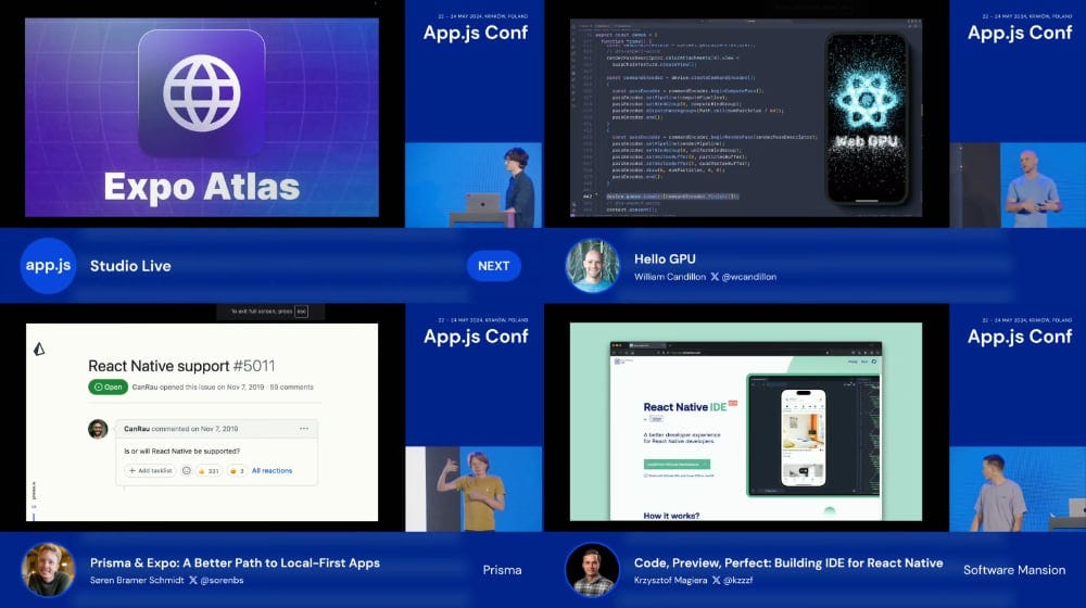 Next.js, Expo, Popover, rethrow, SWR, React-Query, Astro, PPR, tRPC, zsa, Memory leaks, INP, RN IDE, Skia, WebGPU, RNSC, Atlas, Re.Pack, Prisma, SwiftUI, Flutter, Angular...