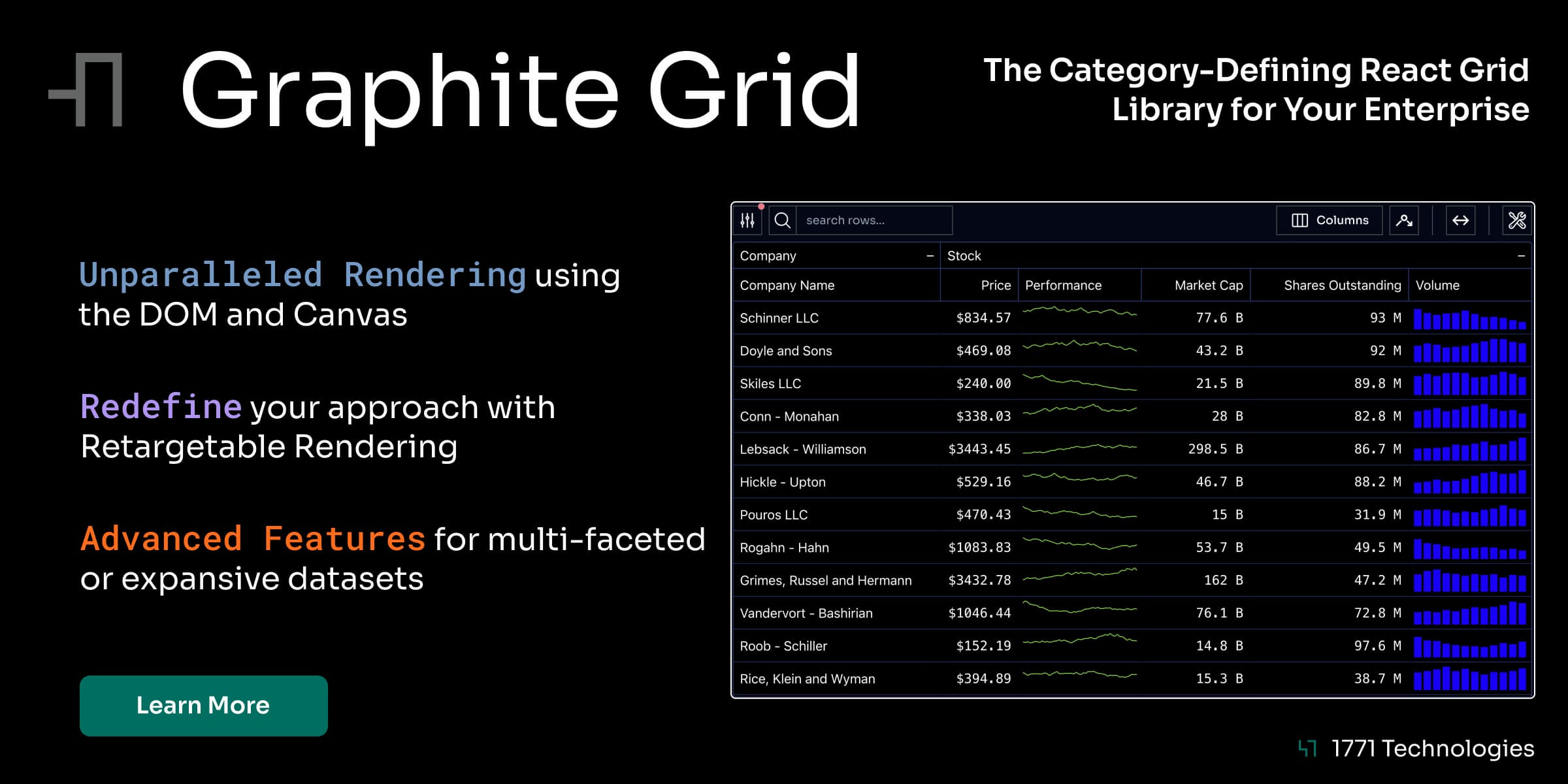 Data grids are complex components of web applications, but current solutions are inefficient, require a lot of maintenance, and perform poorly. Graphite Grid transforms the landscape with two key features: retargetable rendering and reactive signal state.