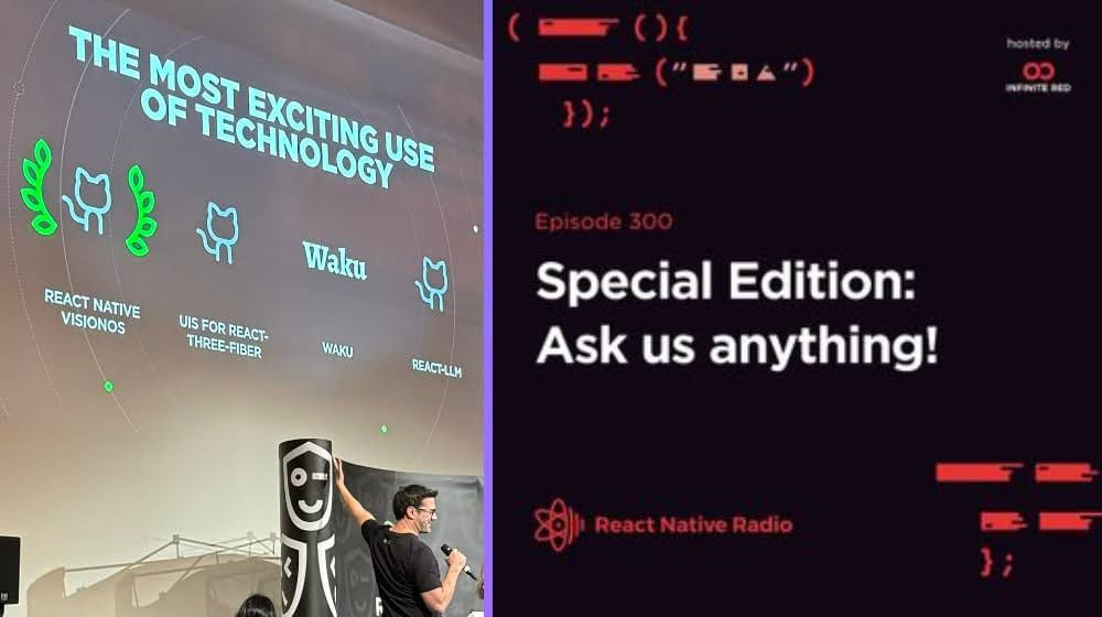 As there is no “big headline news” this week, I want to take the opportunity to celebrate two projects within the React Native community. The team behind React Native visionOS received the React Open Source Award in the category “Most Exciting Use of Technology,” and the team at Infinite Red released the 300th episode of the React Native Radio podcast this week. Congratulations to both teams and thank you for the work you all do for our community!