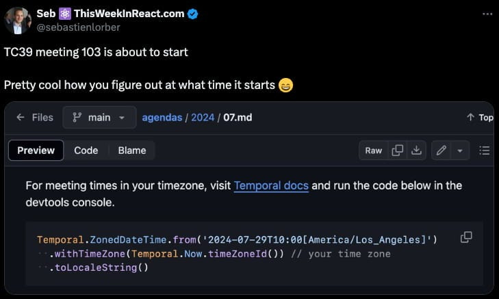 --experimental-strip-typesoption to let TypeScript run natively on Node.js.👀 Agenda for the 103rd meeting of Ecma TC39: Happening right now! Great proposals have already progressed, such as
