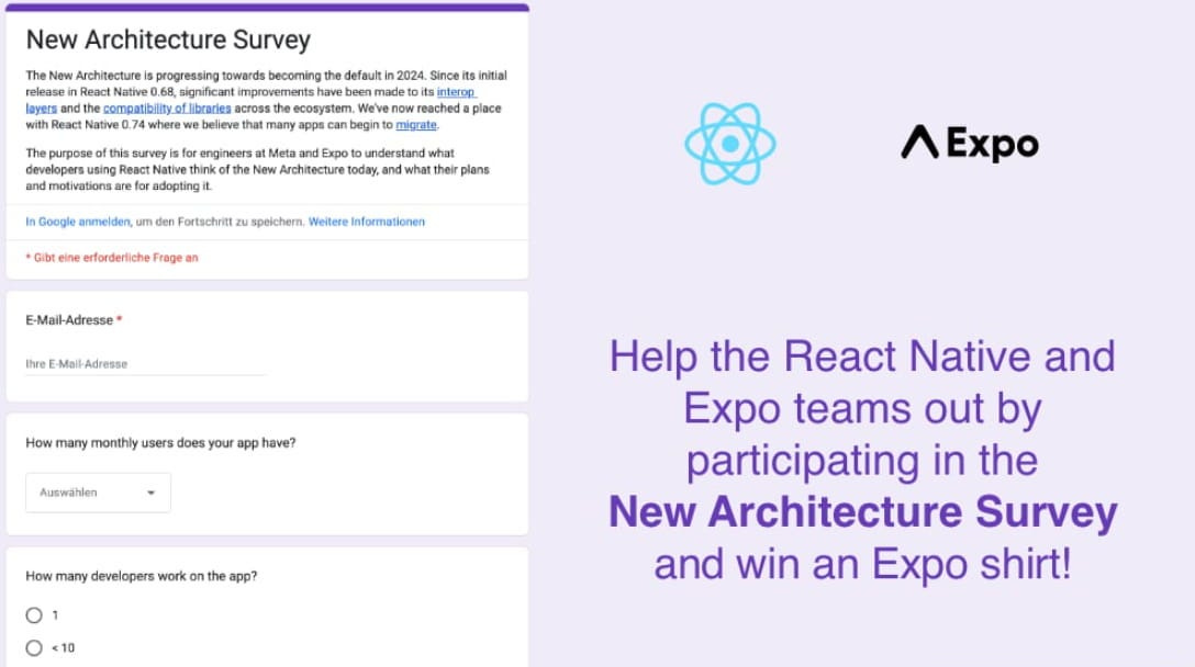 We had a lot of news about the New Architecture over the past months, including how it became the new default this year. Now, the teams at React Native and Expo have launched a survey to learn more about your adoption (or what’s keeping you from adopting it). It has 17 questions and should only take a couple of minutes, so I suggest we all help our friends at Meta and Expo out and share our New Arch experience with them. I’m sure they’ll pay us back by using the feedback for even more improvements!