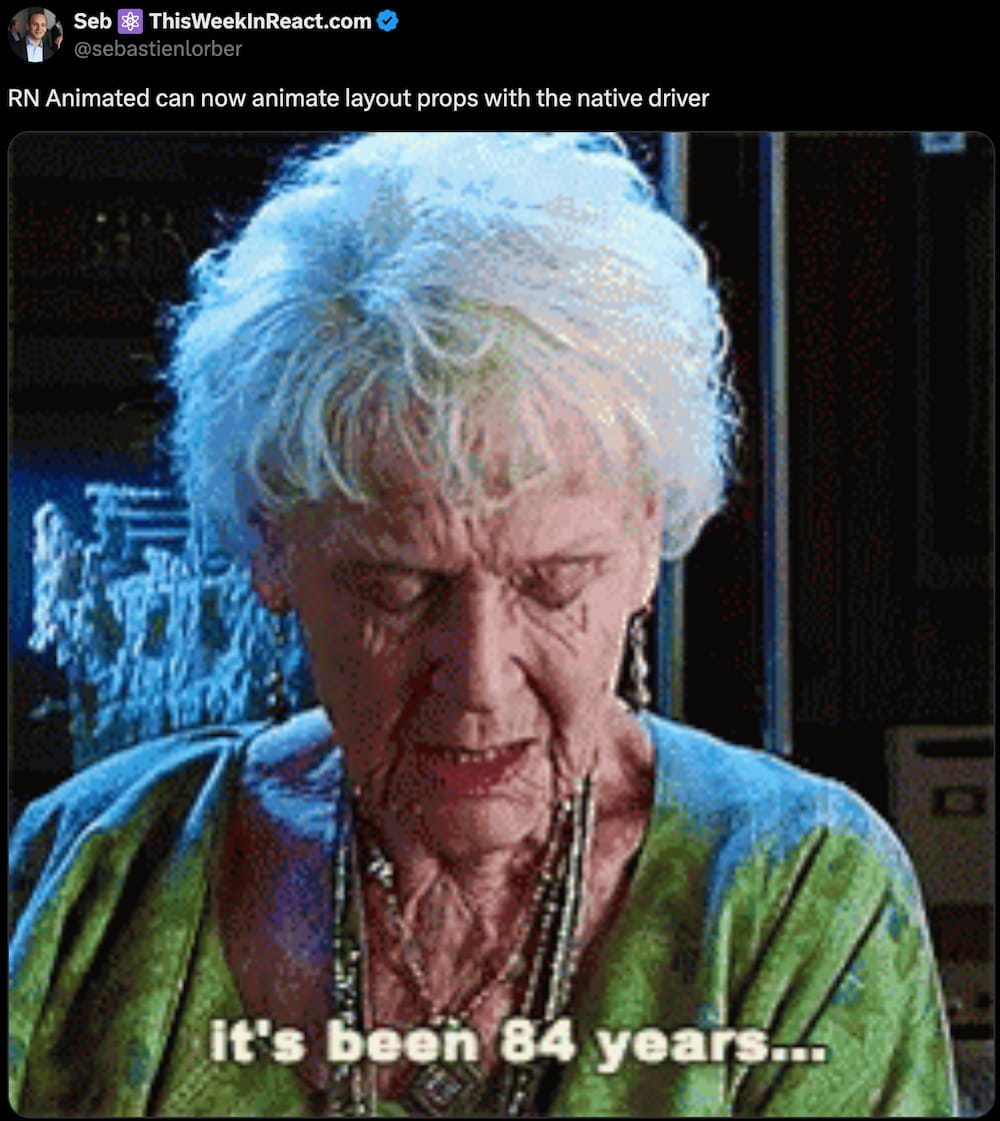 👀 React PR - ViewTransition support for React Native Fabric - Behind a flag, not ready for prime time, but this is one of many PRs showing that